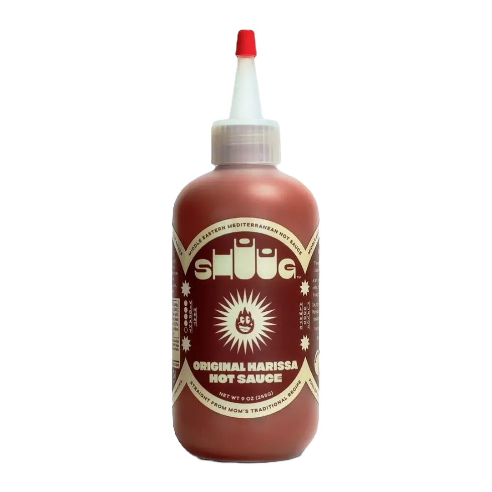 Elevate your dishes with Shuug Harissa, a squeezable hot sauce made from red chilis, roasted red peppers, and Middle Eastern spices. Inspired by Shuug's traditional family recipe, this Harissa delivers a bold, warming heat that adds rich flavor to any dish. Perfect for drizzling over eggs, spicing up sandwiches, or adding depth to dinner entrees, this Harissa is as versatile as it is authentic.